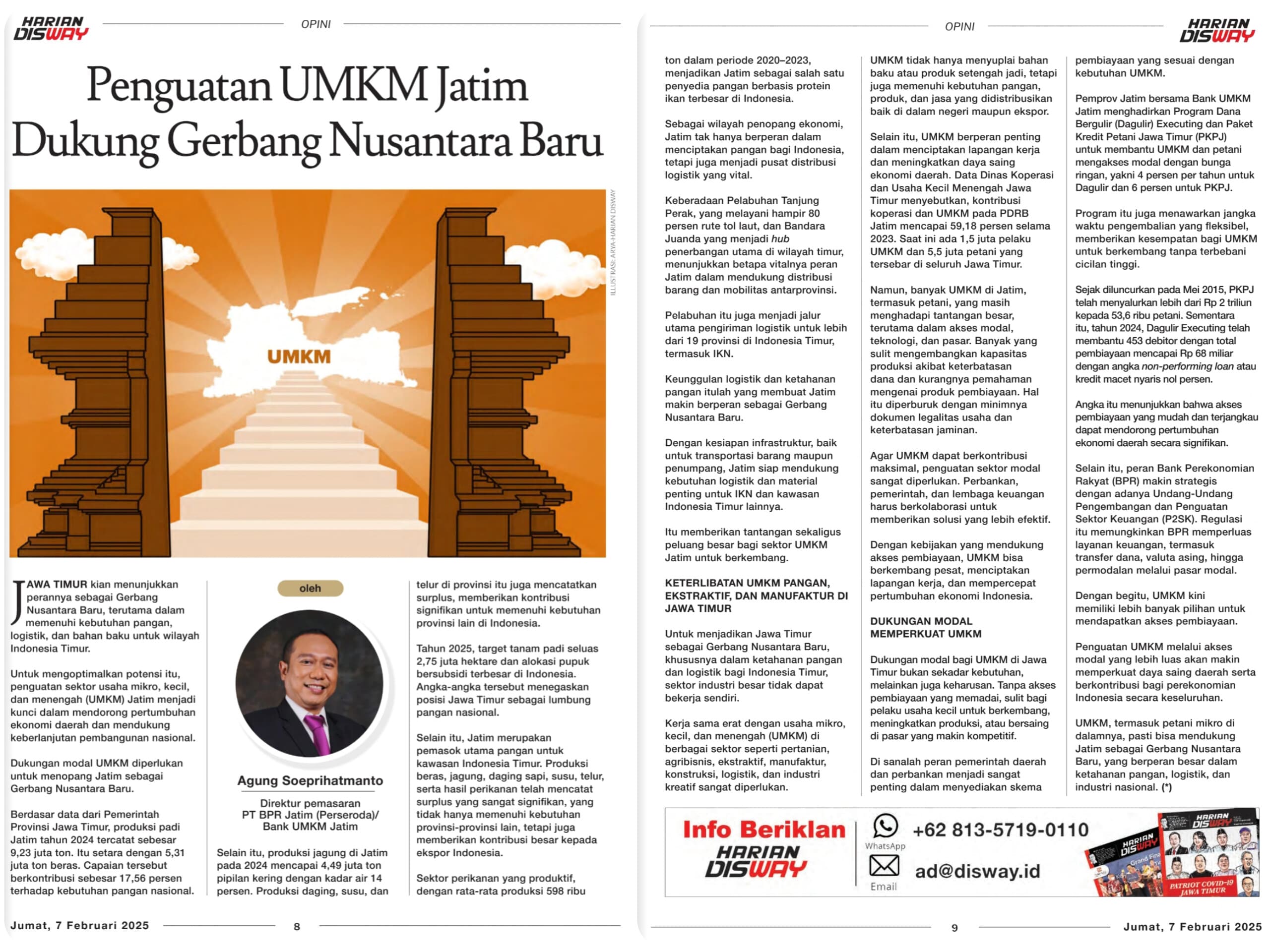 Penguatan UMKM melalui akses modal yang lebih luas akan semakin memperkuat daya saing daerah serta berkontribusi bagi perekonomian Indonesia secara keseluruhan. UMKM, termasuk petani mikro di dalamnya, pasti bisa mendukung Jatim sebagai Gerbang Nusantara Baru, yang berperan besar dalam ketahanan pangan, logistik, dan industri nasional.