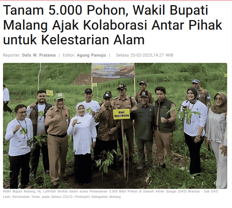 Dalam sambutannya, Wakil Bupati Malang menyampaikan apresiasi atas sinergi yang terjalin dalam program ini. “Penanaman pohon dalam jumlah besar ini bukan hanya sekadar kegiatan seremonial, tetapi juga merupakan investasi jangka panjang bagi lingkungan dan generasi mendatang,” ujarnya.