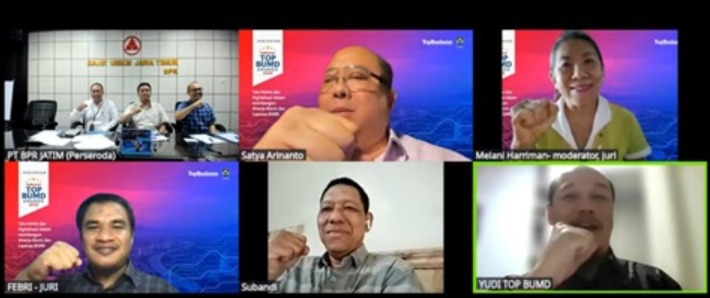 Jajaran direksi perusahaan, antara lain Irwan Eka Wijaya Arsyad selaku Plt. Direktur Utama, Muhammad Amin Direktur Kepatuhan, dan Agung Soeprihatmanto Direktur Pemasaran hadir dalam sesi penjurian yang digelar Majalah TopBusiness secara daring pada Rabu (16/4/2025) lalu.