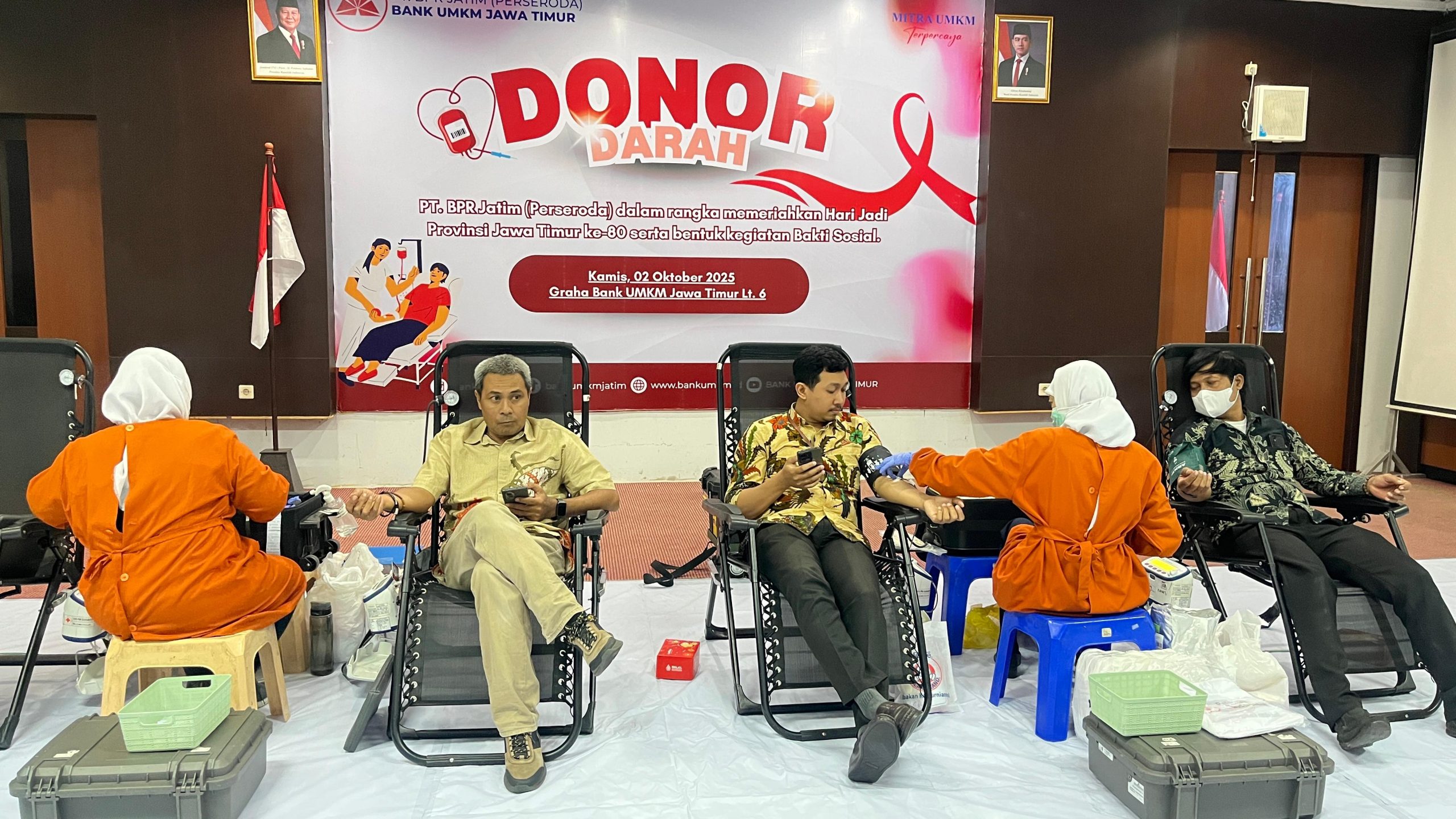 Surabaya – PT BPR Jatim Perseroda (Bank UMKM Jatim) pada Kamis, 2 Oktober 2025, menyelenggarakan kegiatan donor darah sebagai bagian dari peringatan Hari Jadi Provinsi