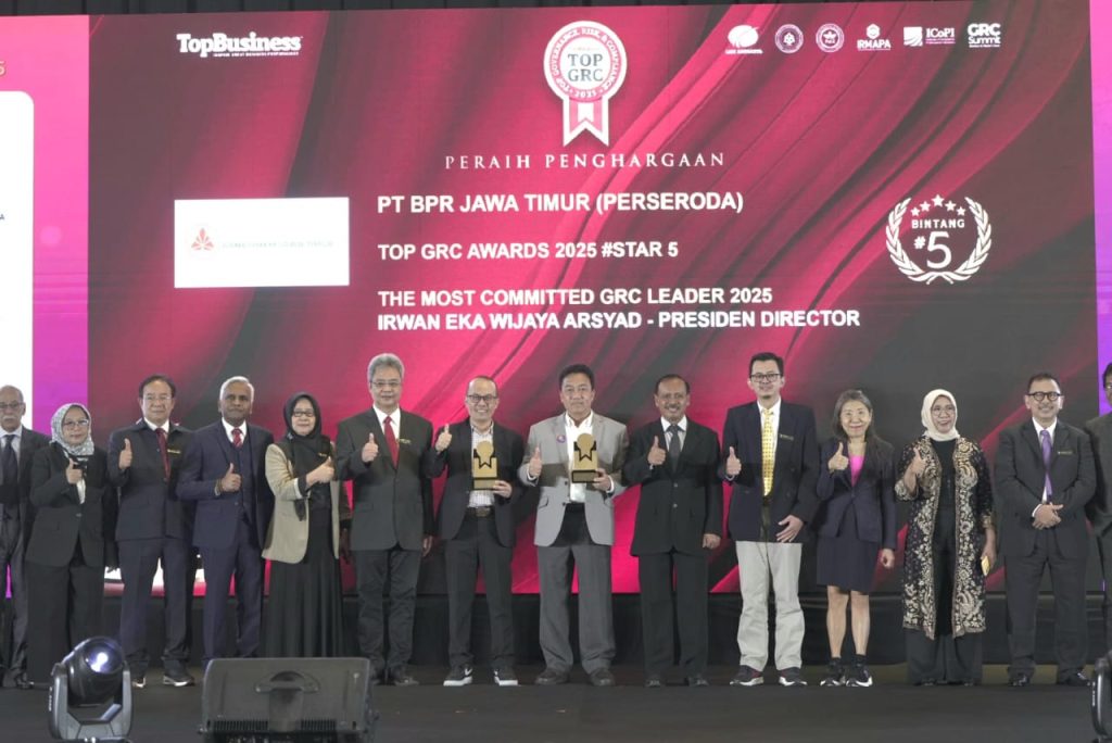 Jakarta– PT BPR Jawa Timur (Bank UMKM Jatim) kembali mengukir prestasi nasional dengan meraih TOP GRC Awards 2025 Bintang 5.